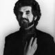 Der Schriftsteller Hubert Fichte vor seinen Skizzen zu dem Roman “Versuch über die Pupertät”. Aufgenommen in der Dürerstraße in Othmarschen, Hamburg. Referenz: Leonore Mau Porträts, Brinkmann & Bose, 2016