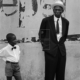 Wartende auf dem Bahnsteig der Metrostation Barbès-Rochechouart. Mann mit Turban im weißen langen Gewand. Daneben eine Frau mit blauer Wollmütze und grauem Wintermantel.